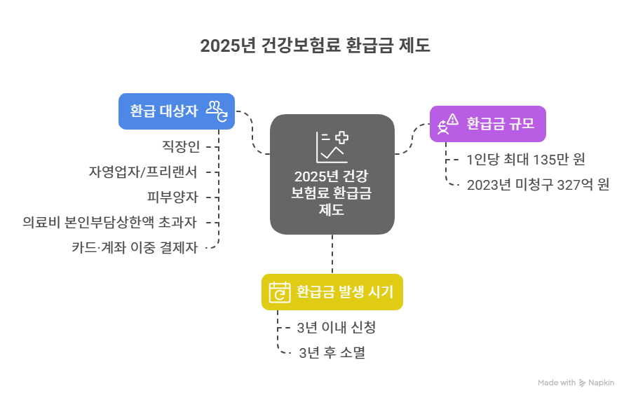 건강보험료 환급금은 내가 낸 보험료가 실제로 내야 할 금액보다 많았을 때, 그 차액을 돌려주는 제도입니다.