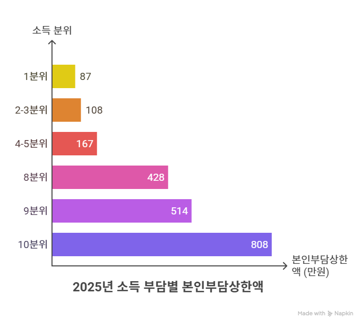 | 소득 분위 | 본인부담상한액(2025년 기준) |