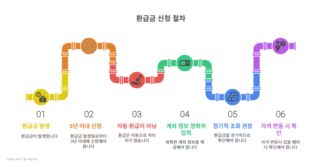 - 보험료 부과 이후 3년 이내에 환급 신청해야 하며, 3년이 지나면 소멸됩니다